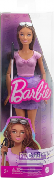 Barbie ma stylową stylizację: różowy top, fioletową spódniczkę z falbanami oraz modne sandałki na obcasie. Charakterystycznym elementem jest biała laska z czerwonym zakończeniem, która umożliwia odgrywanie scenek inspirowanych codziennym życiem. Na głowie lalki znajdują się także okulary przeciwsłoneczne.