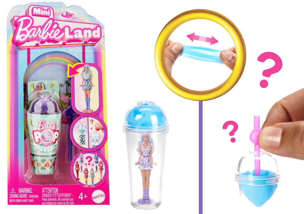 Zestaw Barbie Mini Barbieland Pop Reveal to wyjątkowa mini niespodzianka inspirowana światem Barbie. W kolorowym kubeczku stylizowanym na napój z bąbelkami ukryta jest miniaturowa laleczka Barbie, którą można odkryć w trakcie zabawy.
