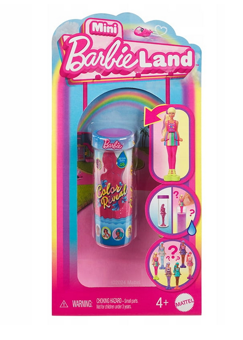 Mini BarbieLand Color Reveal to wyjątkowa niespodzianka dla fanów świata Barbie. W niewielkiej tubie ukryta jest miniaturowa laleczka, której wygląd odkrywa się dopiero podczas zabawy z wodą. To właśnie moment odkrycia sprawia największą radość i buduje napięcie, ponieważ do końca nie wiadomo, która z lalek znajduje się w środku.