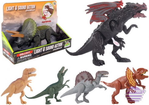 Każdy dinozaur wyposażony jest w mechanizm dźwiękowy i świetlny aktywowany przyciskiem to gwarancja emocjonującej i angażującej zabawy!