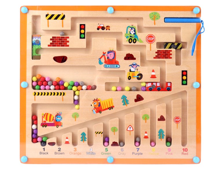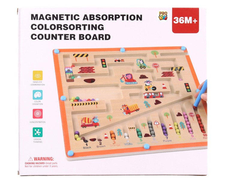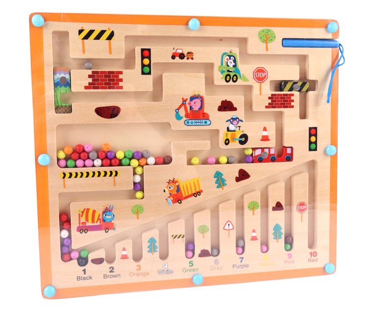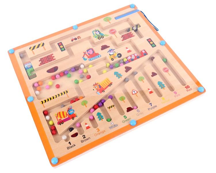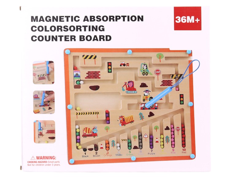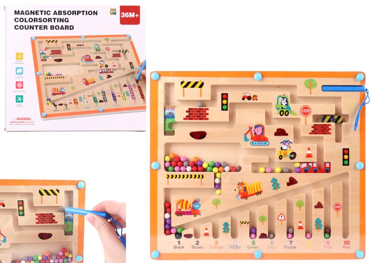 Zabawka wykonana jest z wysokiej jakości drewna z gładkim wykończeniem i przykryta przezroczystą warstwą zabezpieczającą, dzięki czemu kulki nie wypadają z toru. To bezpieczna, trwała i wielokrotnego użytku pomoc edukacyjna, doskonała zarówno do zabawy domowej, jak i w przedszkolu.