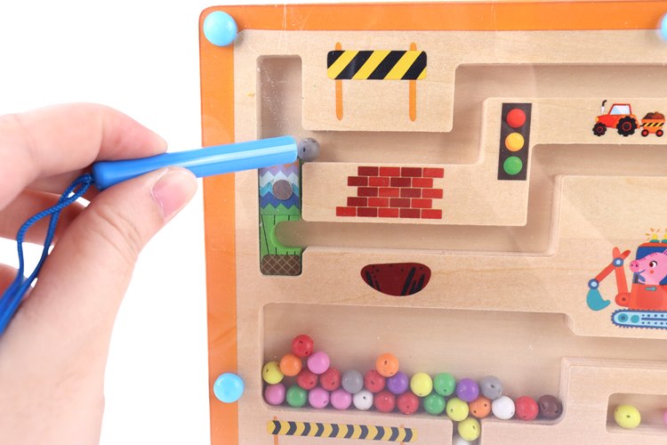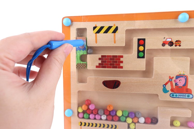 Drewniany labirynt magnetyczny marki Pro Kids to wyjątkowa gra edukacyjna, która rozwija koncentrację, logiczne myślenie i precyzję ruchów w formie fascynującej zabawy. Zadaniem dziecka jest poprowadzenie kolorowych kuleczek przez labirynt do odpowiednich miejsc, używając do tego magnetycznego rysika.
