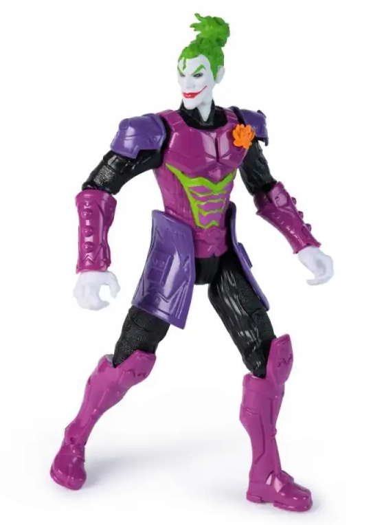 Dynamiczna figurka Jokera z serii Batman Ninja Strike przedstawia jednego z najbardziej rozpoznawalnych złoczyńców uniwersum DC w nowej, stylizowanej odsłonie inspirowanej motywem ninja. Postać została wyposażona w charakterystyczny pancerz w intensywnych odcieniach fioletu oraz zielone detale, które podkreślają jego nieprzewidywalny i chaotyczny charakter.