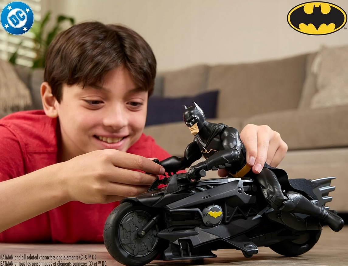 Zestaw Batman Batcycle RC pozwala przenieść dynamiczną akcję z Gotham City prosto do dziecięcego pokoju. W komplecie znajduje się zdalnie sterowany motocykl Batmana (Batcycle) oraz figurka Mrocznego Rycerza, która może usiąść za kierownicą pojazdu i ruszyć do walki z przestępczością.
