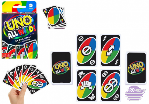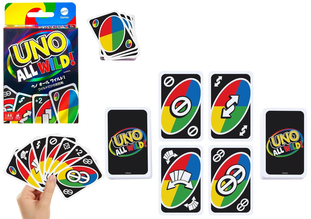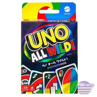 OPIS:UNO All Wild to dynamiczna odsłona kultowej gry karcianej, która wprowadza jeszcze więcej emocji i nieprzewidywalności do rozgrywki. W tej wersji wszystkie karty są kartami specjalnymi, co oznacza brak klasycznych kolorów i numerów oraz znacznie szybsze tempo gry.