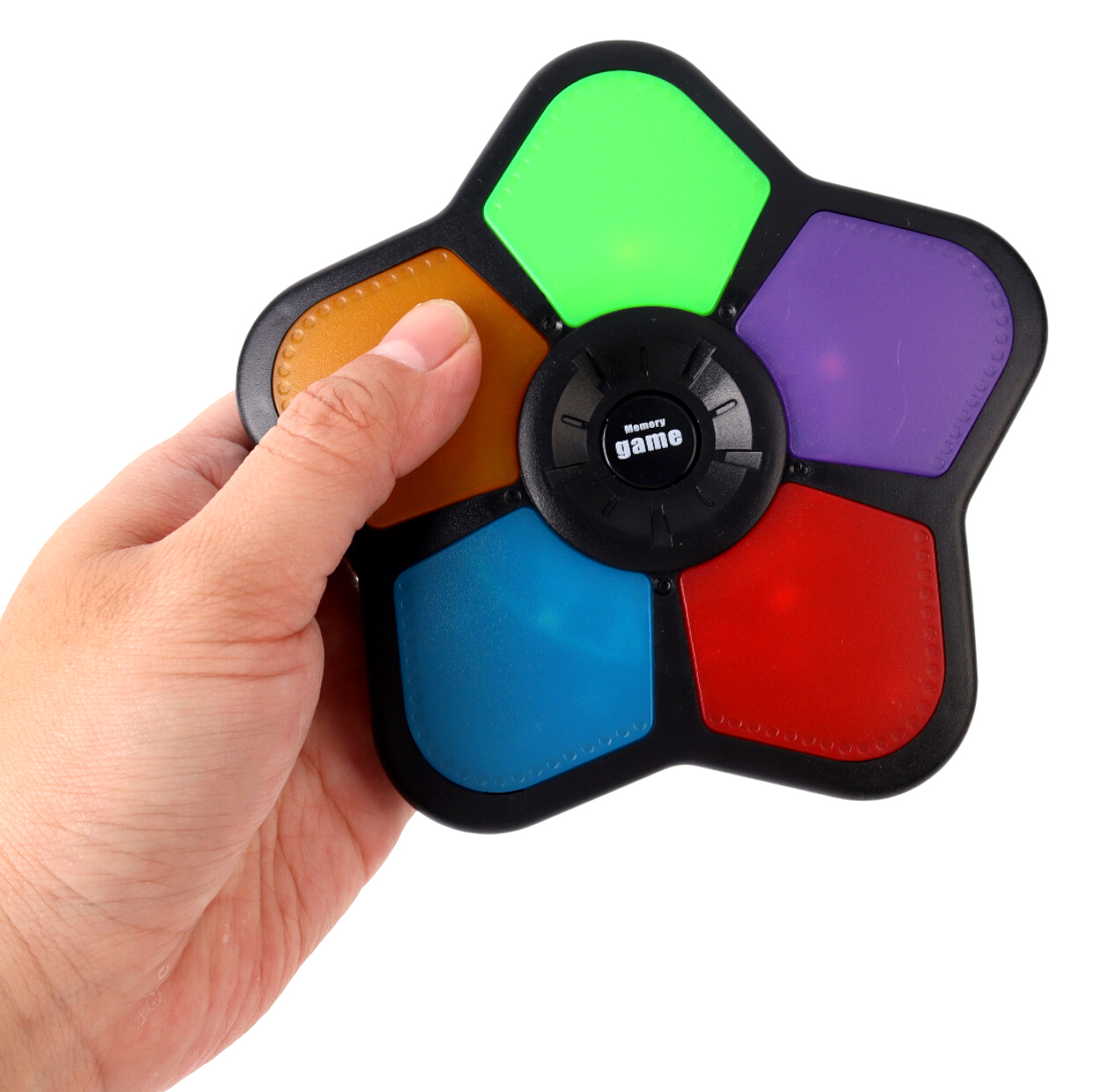 Kompaktowy kształt i pięć wyraźnych, kolorowych pól sprawiają, że gra jest intuicyjna i wygodna w obsłudze nawet dla młodszych graczy. Z każdym kolejnym poziomem sekwencje stają się dłuższe, a wyzwanie rośnie, skutecznie angażując uwagę i ćwicząc pamięć krótkotrwałą.
