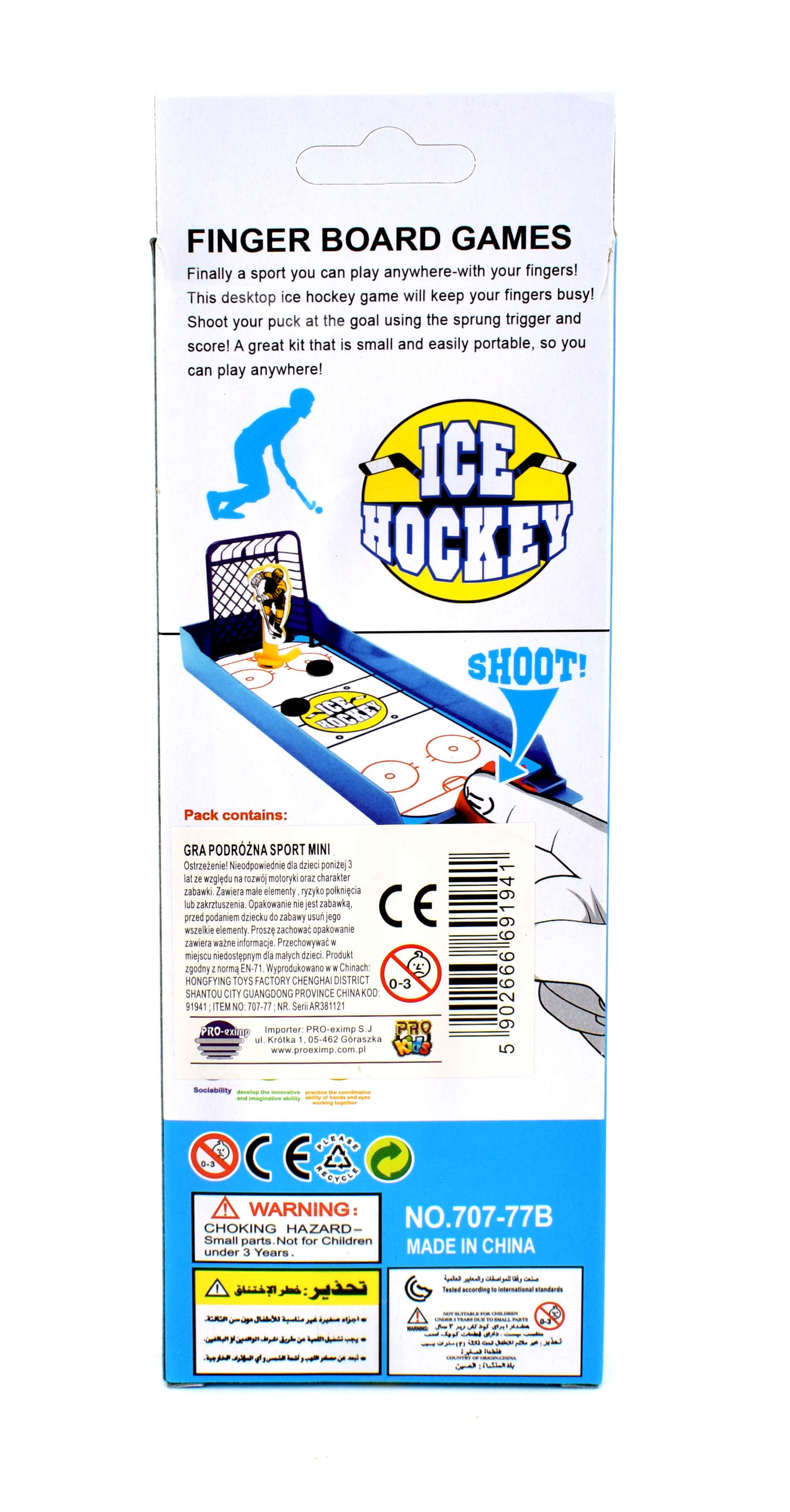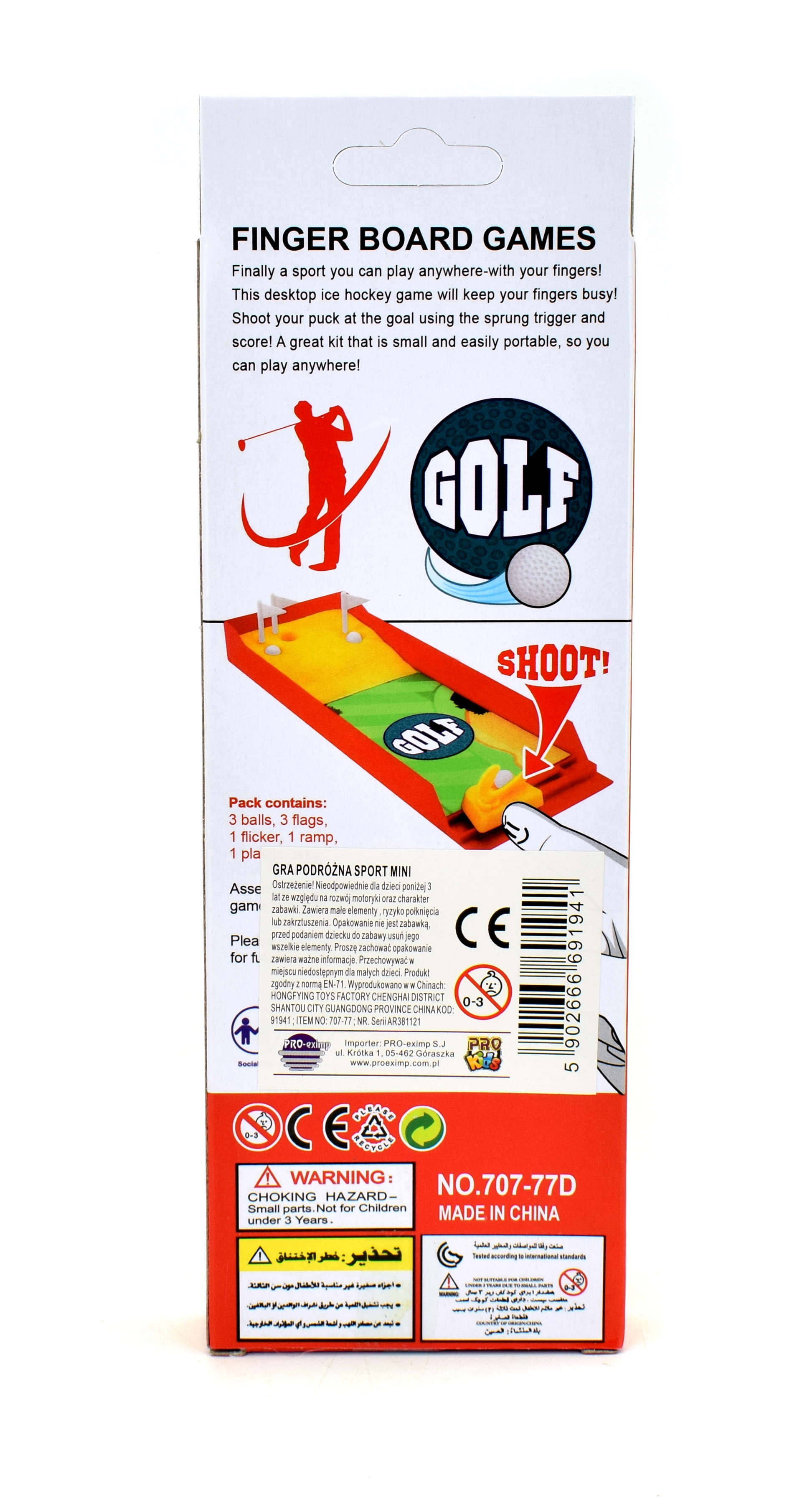 OPIS:Gra podróżna Mini to poręczna gra, która zajmie dziecko w długiej podróży i zapobiegnie nudzie. W asortymencie znajdziesz mini gry sportowe tj. golf, czy hokej. Mini wyrzutnia służy do uderzenia piłek i krążków w bramce, czy dołku.