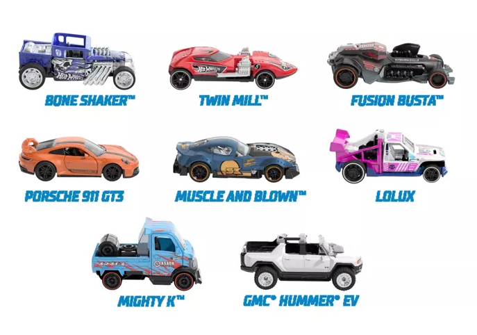 Seria obejmuje różnorodne modele od kultowych konstrukcji Hot Wheels po realistyczne auta jak Porsche 911 GT3 czy GMC Hummer EV. Każdy pojazd został wykonany z metalowymi elementami co zwiększa trwałość i nadaje mu bardziej kolekcjonerski charakter.