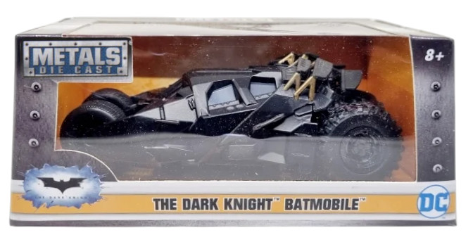 Batmobile z filmu The Dark Knight to jedna z najbardziej rozpoznawalnych i realistycznych wersji pojazdu Batmana. Ten model w skali 1:43 od Jada Toys wiernie odwzorowuje kultowego Tumblera - maszynę bardziej przypominającą wojskowy pojazd szturmowy niż klasyczny samochód.