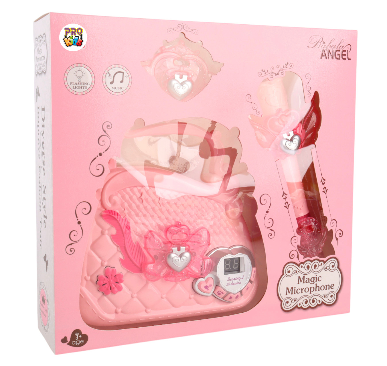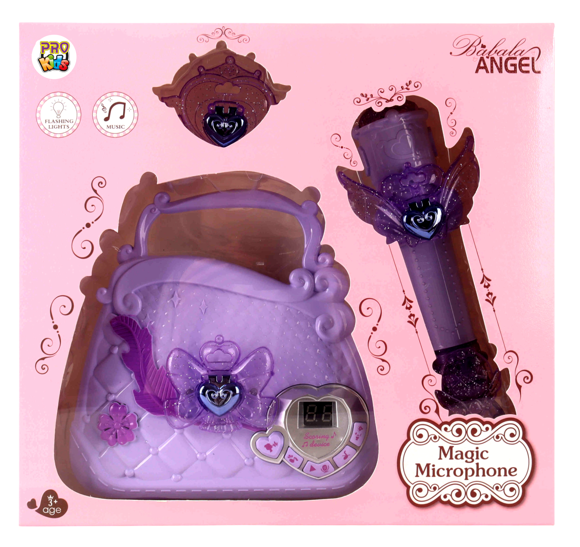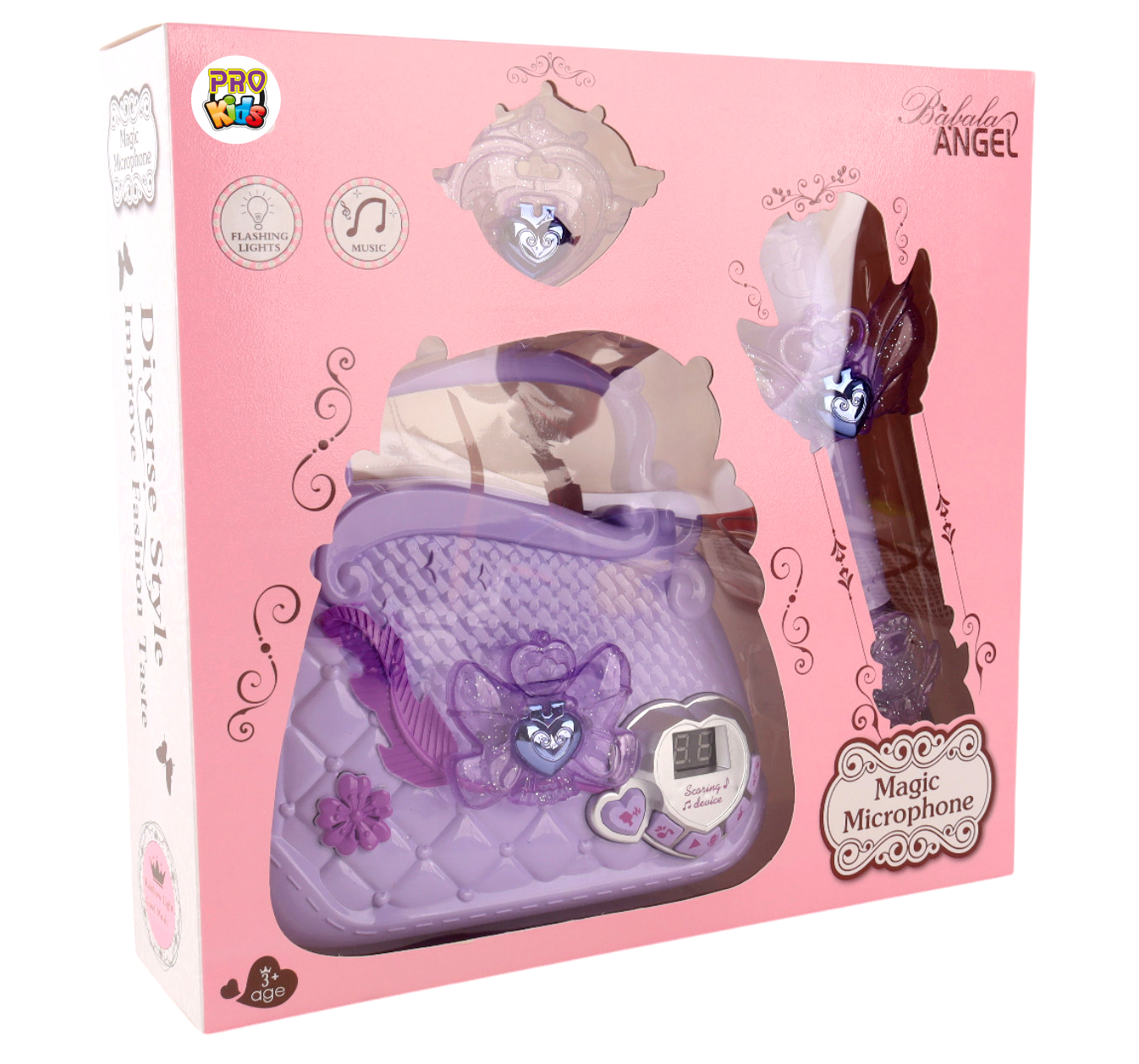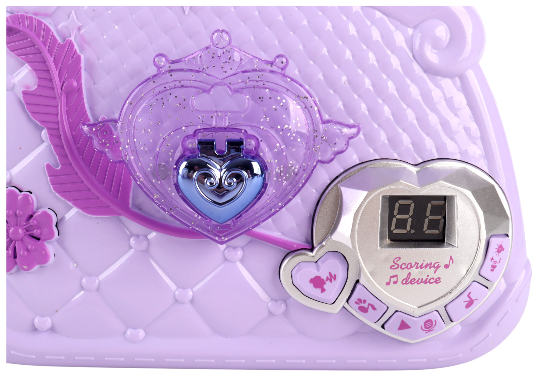 Zabawka dostępna jest w dwóch wersjach kolorystycznych różowej i fioletowej co pozwala dopasować zestaw do indywidualnych upodobań dziecka. Wbudowane efekty dźwiękowe, melodie oraz wyświetlacz LED nadają zabawie interaktywnego charakteru, a estetyczne detale w postaci połyskujących ozdób sprawiają, że torebka prezentuje się jak prawdziwy rekwizyt sceniczny.
