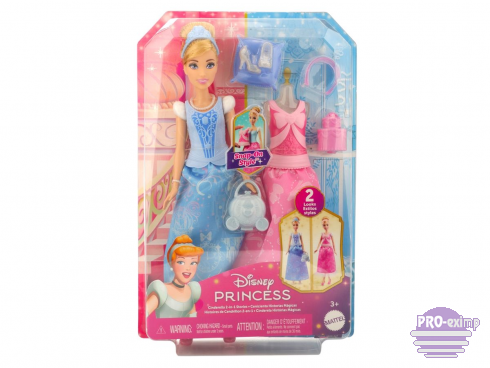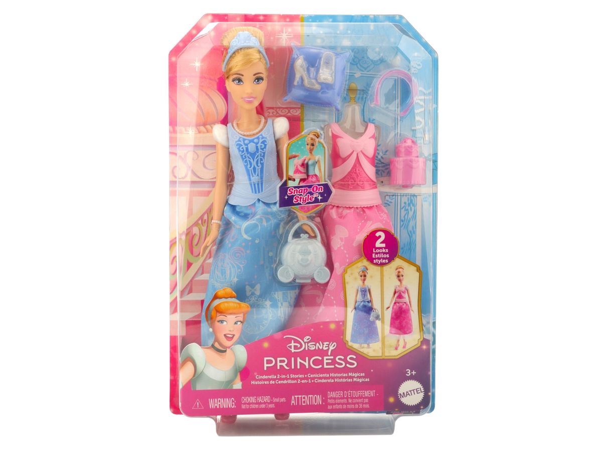 Odtwórz jedną z najbardziej znanych bajkowych przemian dzięki lalce Disney Princess Kopciuszek w zestawie 2w1. Ta wyjątkowa lalka pozwala przeżywać historię bohaterki w dwóch odsłonach - eleganckiej, balowej księżniczki oraz w codziennej stylizacji przed wielkim balem.