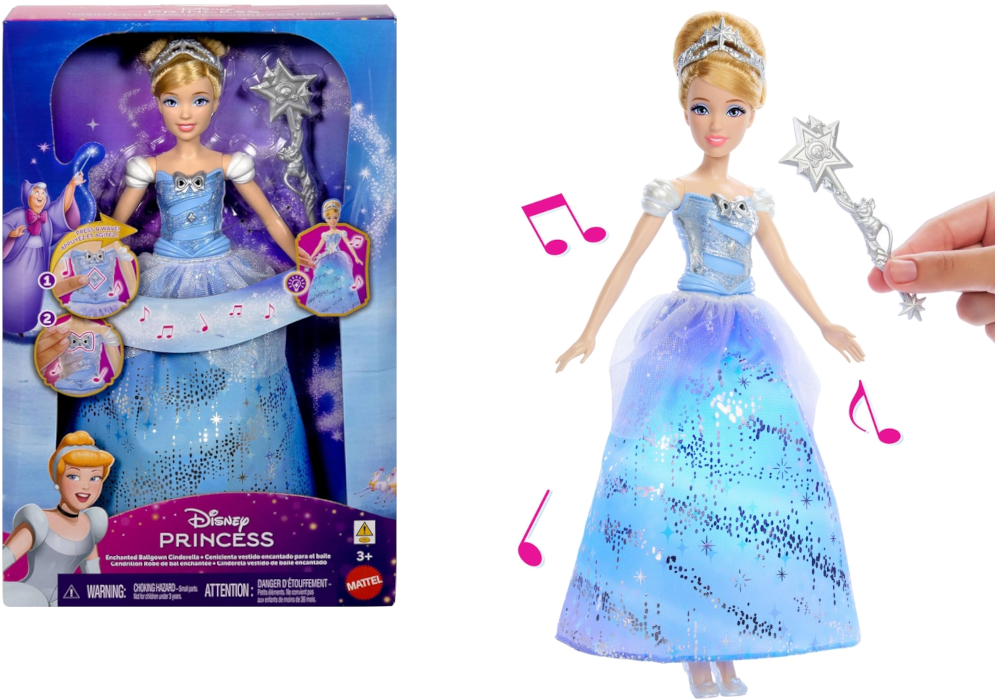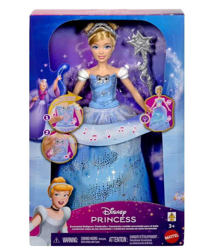 Poznaj niezwykłą wersję księżniczki Kopciuszek, która łączy klasyczną elegancję z nowoczesną, interaktywną zabawą. Lalka zachwyca dopracowanym wyglądem oraz bogato zdobioną suknią balową inspirowaną najbardziej rozpoznawalną sceną z bajki.