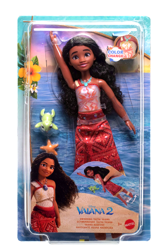 Lalka Vaiana Swimming Vaiana inspirowana filmem -Moana 2- pozwala dzieciom odtwarzać morskie przygody bohaterki znanej z animacji Disney. Zabawka została zaprojektowana tak, aby można było bawić się nią zarówno na sucho, jak i w wodzie - Vaiana może pływać, a jej ruchome nogi umożliwiają realistyczne odgrywanie scen z oceanu.