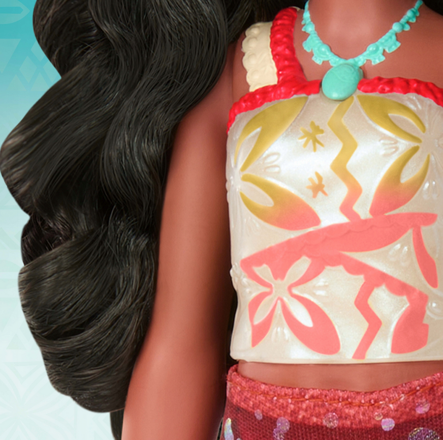 W zestawie znajdują się także urocze dodatki - mały żółwik oraz rozgwiazda, które pozwalają tworzyć własne historie z podwodnego świata. Długie, falujące włosy oraz charakterystyczny strój Vaiany inspirowany kulturą Polinezji sprawiają, że lalka wiernie oddaje wygląd bohaterki z filmu.