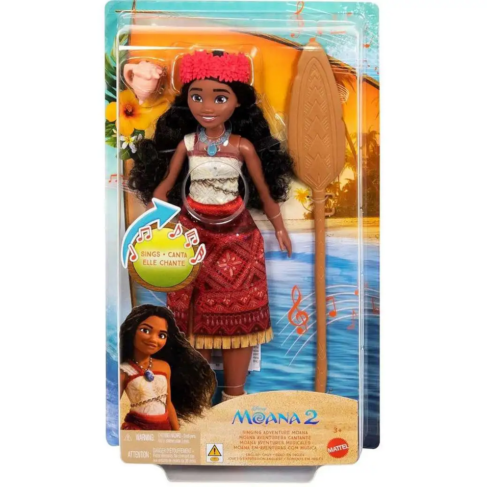 Interaktywna lalka Vaiana (Moana) Singing Adventure inspirowana jest bohaterką filmu Moana 2. Dzięki funkcji dźwiękowej lalka odtwarza fragment piosenki z filmu - wystarczy nacisnąć przycisk na jej tułowiu, aby rozpoczęła śpiew. To doskonała zabawka dla dzieci, które chcą odtwarzać sceny z filmu i tworzyć własne oceaniczne przygody.