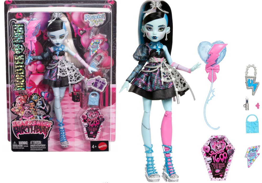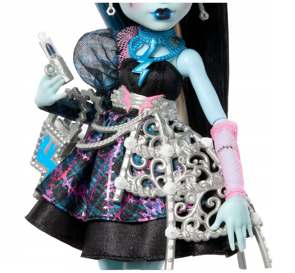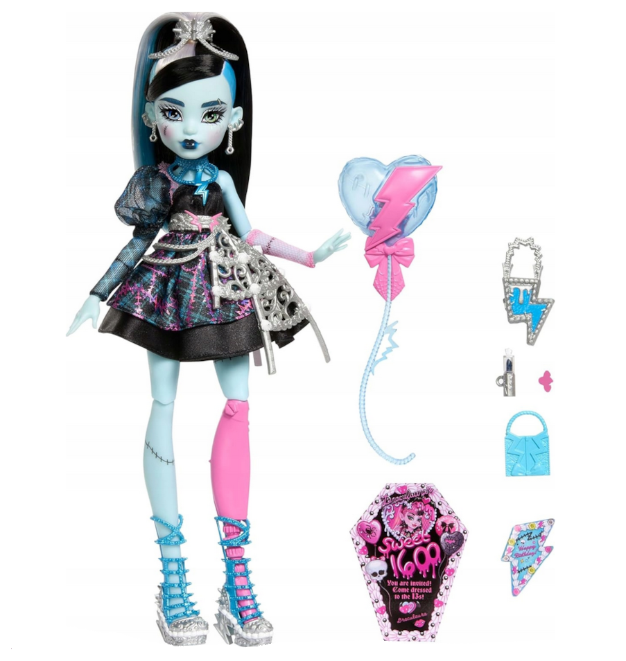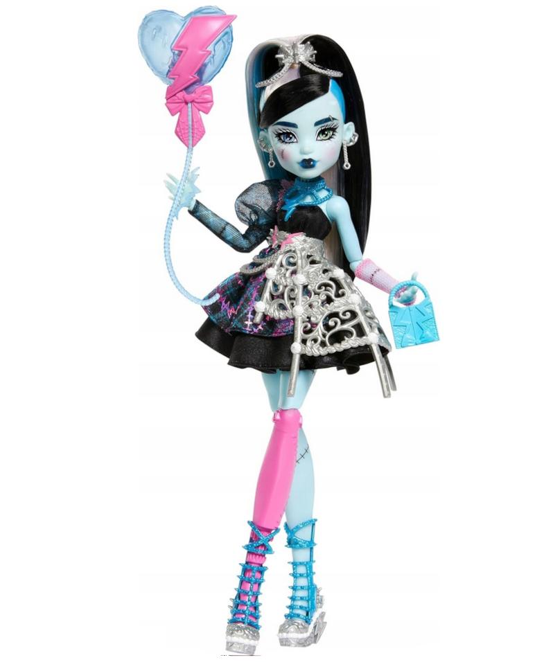 Frankie Stein powraca w wyjątkowej odsłonie inspirowanej urodzinową kolekcją Scary Sweet Birthday od Mattel. Ta wersja bohaterki łączy charakterystyczny styl Monster High z motywem przyjęcia, tworząc efektowny i pełen detali zestaw, który przyciąga uwagę już od pierwszego spojrzenia.