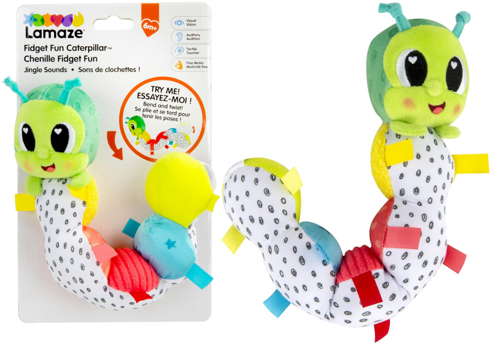 Maskotka Lamaze Gąsienica to starannie zaprojektowana zabawka sensoryczna, która wspiera rozwój dziecka już od pierwszych miesięcy życia. Jej przyjazny uśmiech i duże kontrastowe oczy naturalnie przyciągają uwagę malucha, zachęcając do interakcji i eksploracji.