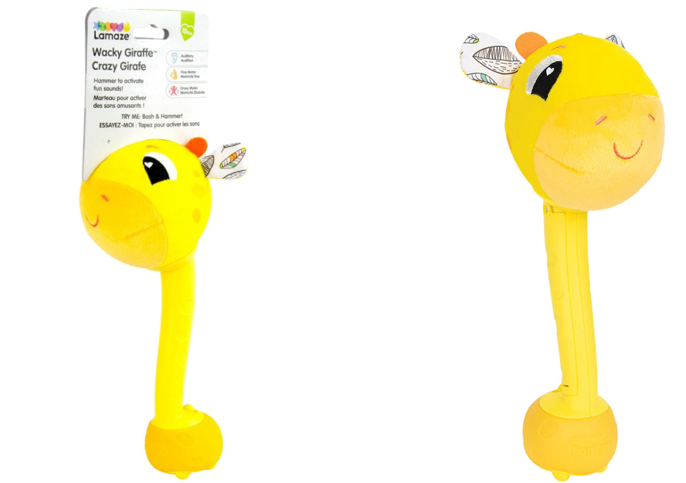 Maskotka Lamaze Wacky Giraffe to oryginalna zabawka sensoryczna zaprojektowana tak aby zachęcać dziecko do ruchu i aktywnej zabawy. Wyróżnia się nietypową formą przypominającą młoteczek oraz uroczą głową żyrafy która przyciąga uwagę malucha i wywołuje naturalną ciekawość.
