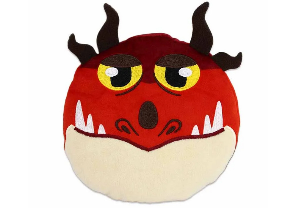 Maskotka poduszka w kształcie smoka Hakokieł to wyjątkowo oryginalna propozycja dla fanów serii "Jak wytresować smoka". Charakterystyczny, lekko zadziorny wyraz twarzy, rogi oraz intensywna kolorystyka sprawiają, że przyciąga uwagę i wyróżnia się na tle klasycznych pluszaków.