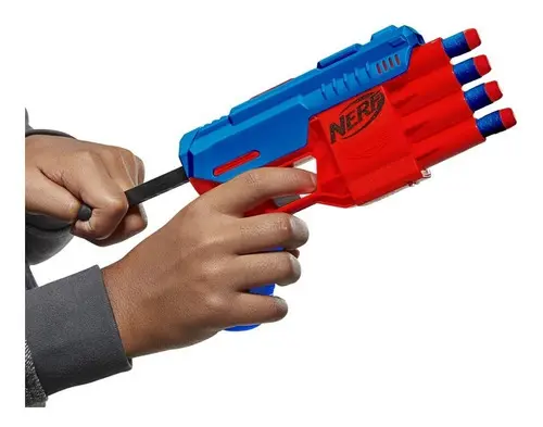 Każdy blaster wyposażony jest w czterolufowy system strzału, który pozwala na szybkie oddanie kilku strzałów z rzędu. Mechanizm ręcznego przeładowania jest prosty i intuicyjny, co sprawia, że zabawa jest dynamiczna i nieprzerwana.