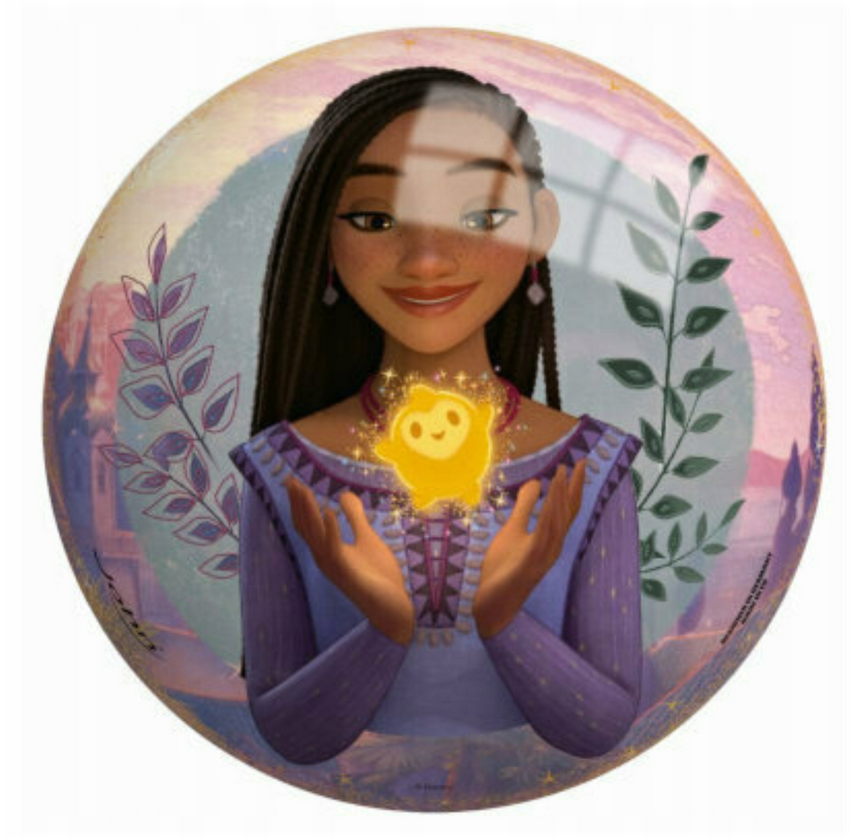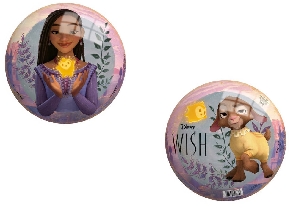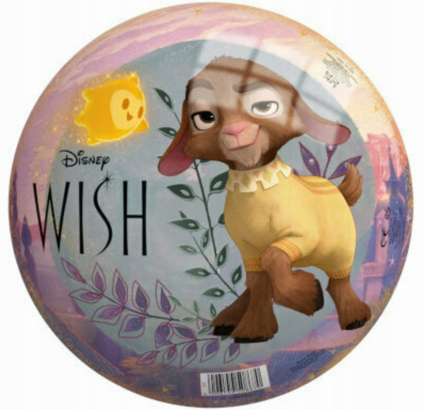 Kolorowa piłka gumowa z motywem Disney Wish to świetna propozycja dla dzieci, które uwielbiają aktywną zabawę oraz bohaterów najnowszej produkcji Disneya. Na powierzchni piłki znajduje się ilustracja Ashy oraz jej wiernego towarzysza Valentino, a także magicznej gwiazdy, która nawiązuje do historii spełniania życzeń.