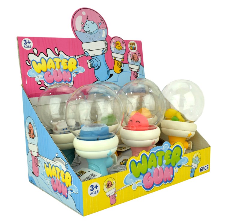 Kolorowy pistolet na wodę z przezroczystą kulą i uroczą figurką zwierzątka to propozycja letniej zabawy, która łączy funkcję klasycznej zabawki wodnej z atrakcyjną formą wizualną. Przezroczysta kula pełni rolę zbiornika na wodę, a umieszczona wewnątrz figurka porusza się podczas zabawy, co dodatkowo przyciąga uwagę dziecka i zwiększa radość z użytkowania.