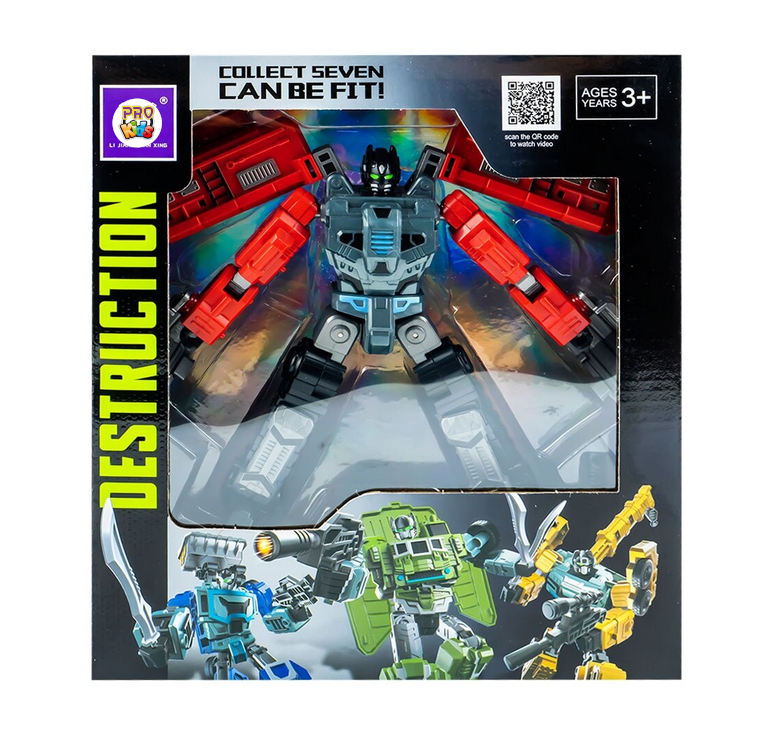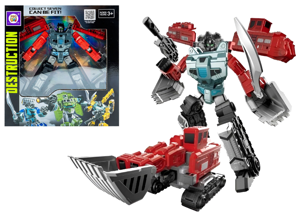 Model z serii Power Kong ? Destruction to figurka, która daje Ci wyjątkowe możliwości zabawy dzięki połączeniu funkcjonalności ciężkiego sprzętu z temperamentem futurystycznego mecha. W trybie pojazdu to masywna, czerwono-szara ładowarka gąsienicowa z dużą, wyprofilowaną łyżką o imponującym zasięgu. Wystarczy kilka ruchów, aby przekształcić ją w dynamicznego robota bojowego, którego charakterystyczne czerwone ramiona oraz szerokie panele pancerza nadają mu wyrazisty i bojowy wygląd.