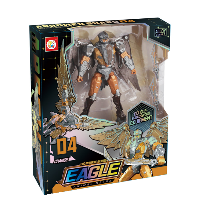 Model EAGLE z serii Robot World to figurka, która łączy dynamikę futurystycznego mecha z majestatycznym wyglądem drapieżnego orła. Konstrukcja została zaprojektowana tak, by imponować zarówno w formie robota, jak i w trybie zwierzęcym ? skrzydła o mechanicznym wzorze, smukłe elementy pancerza i intensywna, złoto-srebrna kolorystyka podkreślają jego unikalny charakter.